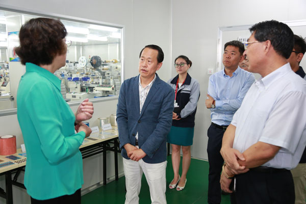 慕镕鍵董事長陪同張惠市長一行參觀了聯(lián)橋新材多功能復合材料生產(chǎn)車間,就多功能復合材料的產(chǎn)品功能、市場優(yōu)勢、合作伙伴以及未來發(fā)展建設(shè)等問題做了詳細的匯報。
