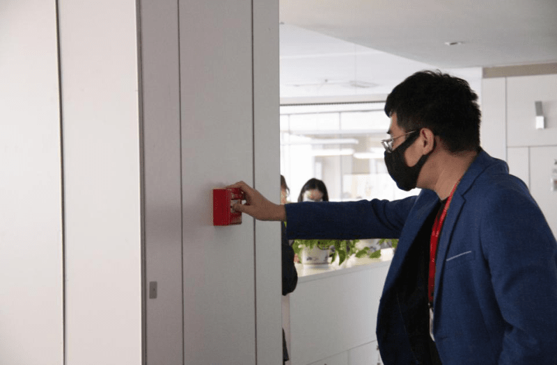 當(dāng)天15時(shí),聯(lián)橋集團(tuán)安全部長(zhǎng)、消防疏散演練總指揮宋杰一聲令下,演練正式拉開帷幕。首先,18樓會(huì)議室發(fā)現(xiàn)“火險(xiǎn)”并發(fā)出火警報(bào)警信號(hào),樓層負(fù)責(zé)人第一時(shí)間上報(bào)“火情”,按照應(yīng)急預(yù)案采取措施;隨后,各演練工作組接到通知后都迅速反應(yīng)到位,以本樓層員工消防志愿者為第一梯隊(duì),取用本樓層現(xiàn)有滅火器展開滅火救援,集團(tuán)滅火救援組也馬上到位支援,利用滅火器和室內(nèi)消防栓對(duì)“火場(chǎng)”滅控,最終成功控制撲滅“火情”。